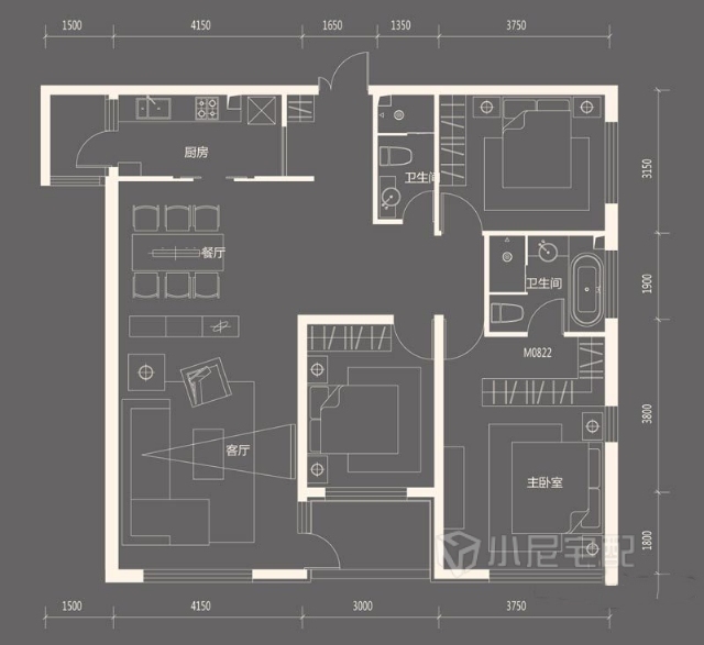 家具追求平衡与朴素的规整美,因为卧室是休息的地方,所以外形需要传达一种平稳与和谐。