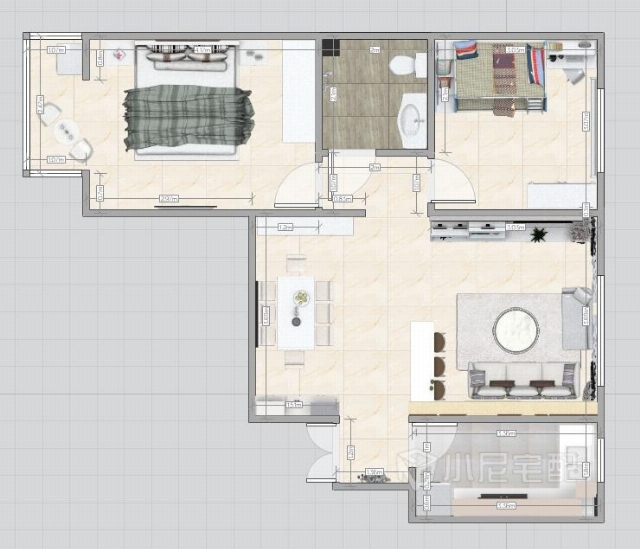 厨房也配合整体色调用了白色,L型厨房使小空间有了更多的实用功能。