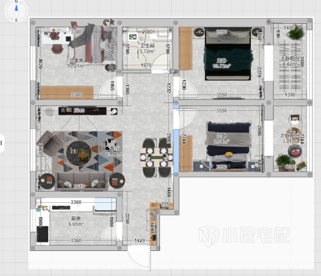 从简约出发,色彩我们以白色为主,加以木色的家具,给空间增加了温度,同时活动家具我们以绿色来点缀,让空间更有活力。